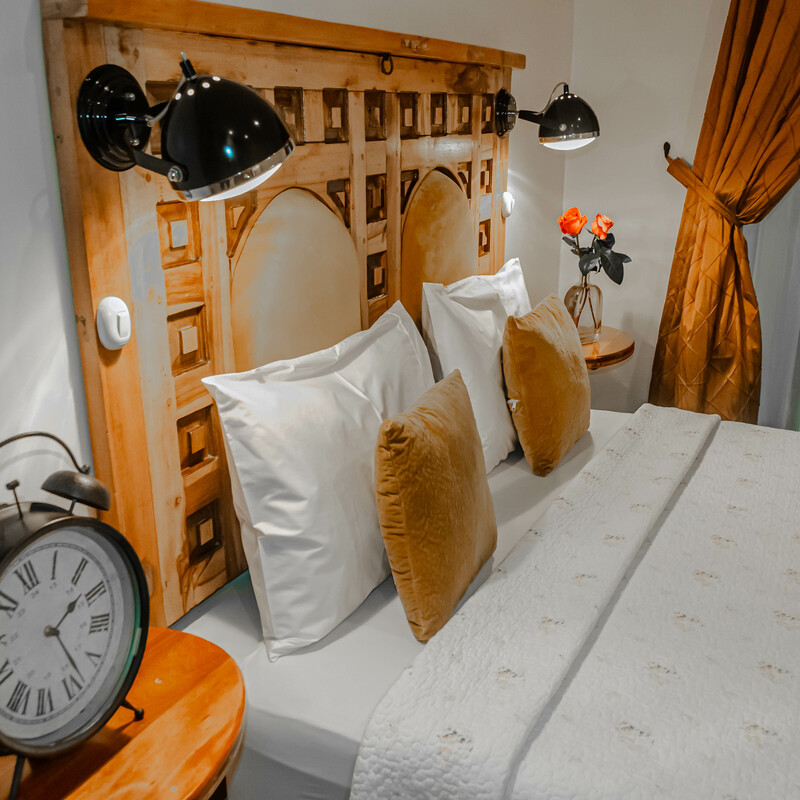 Détendez-vous dans l'éclairage romantique qui met en valeur la structure unique des arches, des briques et des meubles sélectionnés, ce qui en fait un lieu idéal pour une escapade romantique ou une retraite luxueuse. Le grand lit confortable vous invite à plonger dans une nuit de sommeil réparateur, pour vous réveiller frais et dispos.